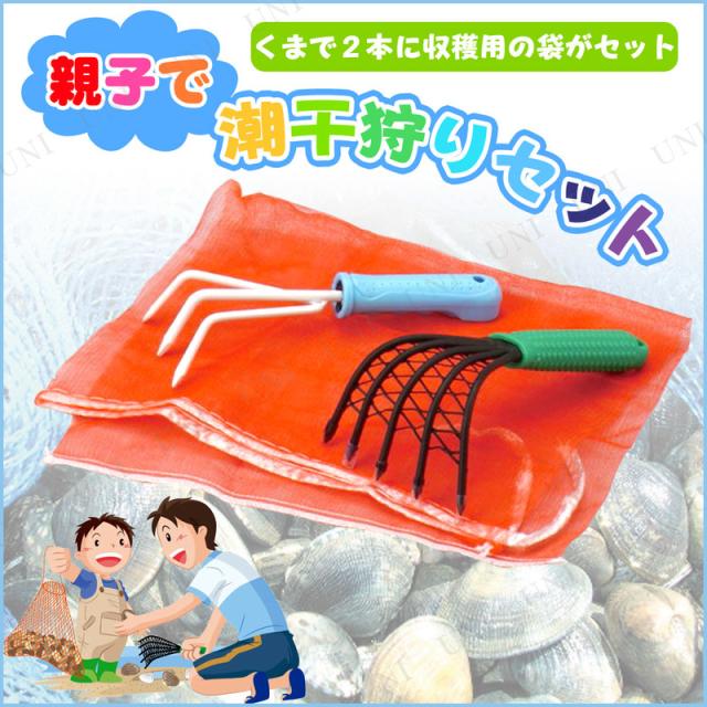 | 商品説明 | 家族で楽しく潮干狩り!親子で楽しめるクマデ2本に収穫した貝などを入れておけるネットがセットになった潮干狩りセットです |