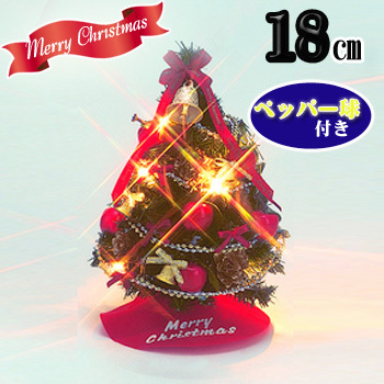 クリスマスツリー 18cmデコレーションツリー アップル ペッパーライト付き クリスマスツリー