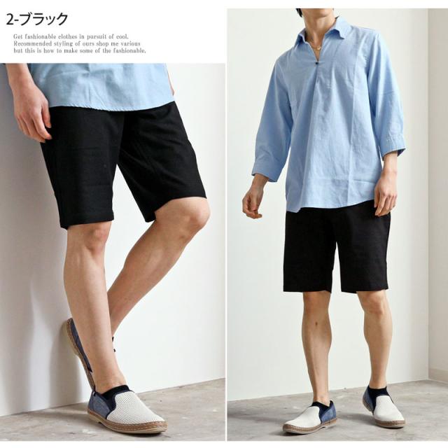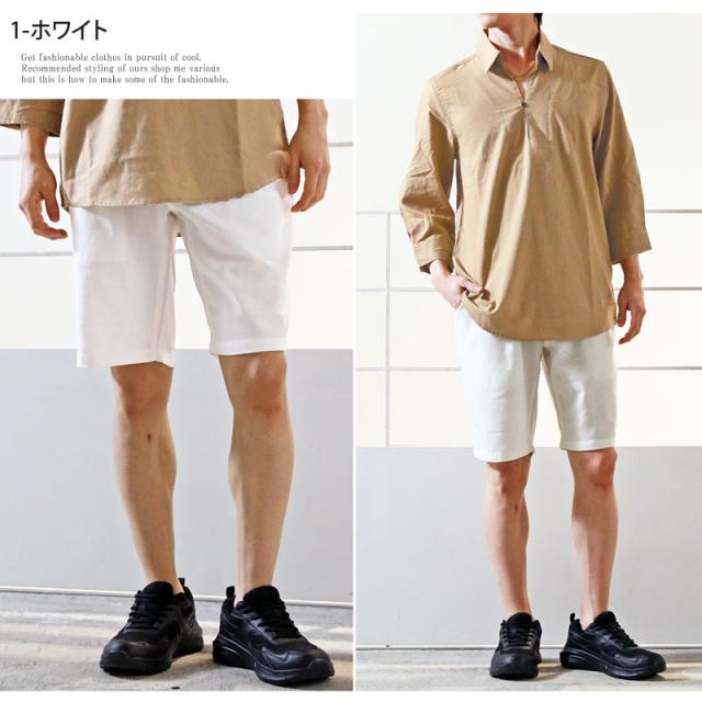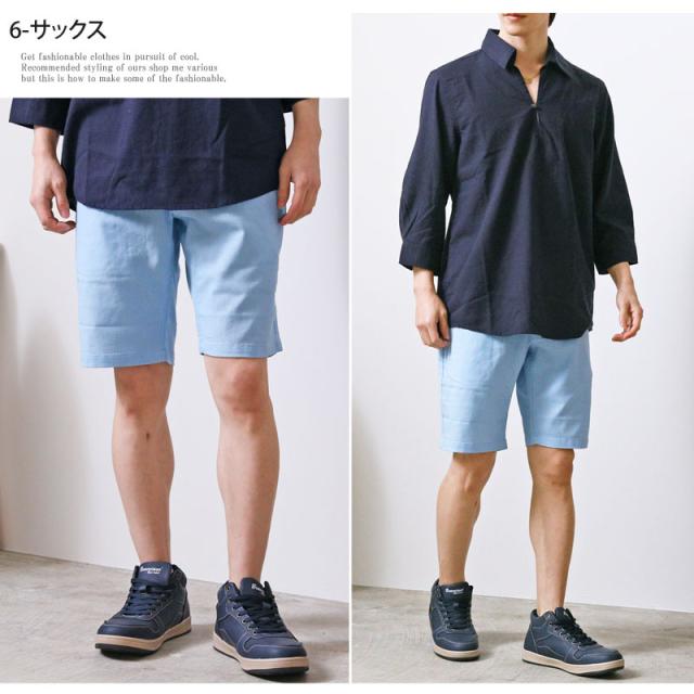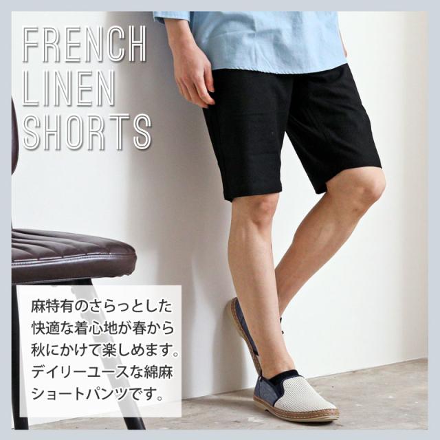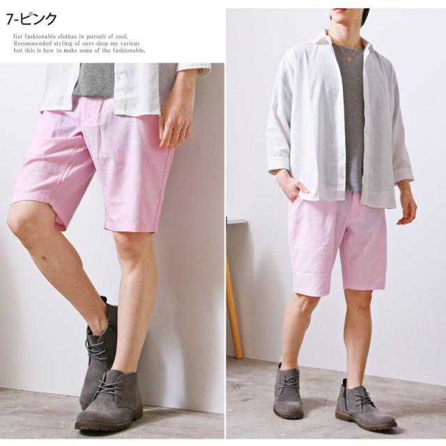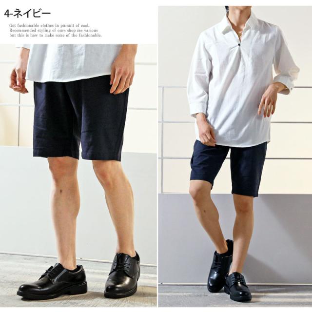 春 夏 新作 ショートパンツ メンズ ハーフパンツ 綿麻 リネン 無地 5分丈 涼しい リニューアルVer 送料無料 ゆうパケ