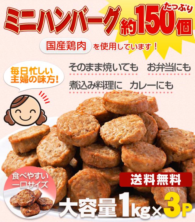 【送料無料】ハンバーグ メガ盛り約150個 一口サイズのミニハンバーグ(国産鶏使用)1kg×3P まとめ買い 大量 冷凍惣菜 業務用 お惣菜 お弁当 ハンバーグ つくね 電子レンジ 温めるだけ 冷凍 朝食 弁当 おかず レンチン 訳あり レンジでチン 冷凍おかずセット 福袋 食品 鳥益