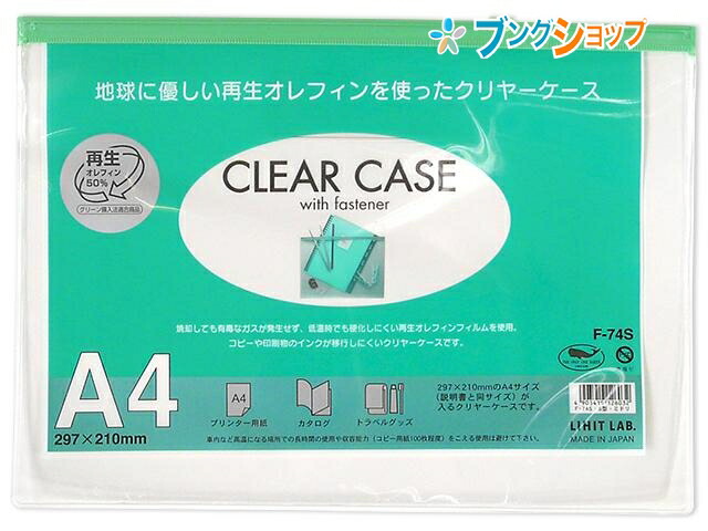 リヒト クリアケース ファスナーケース A4S F-74S緑 リヒトラブ LIHITLAB 書類 保管 収容 収納 分類 保存 整理 インナーケース 会社 学校 連絡袋 書類 雑誌 化粧品入れ スライドファスナー 中身が確認できる透明ケース