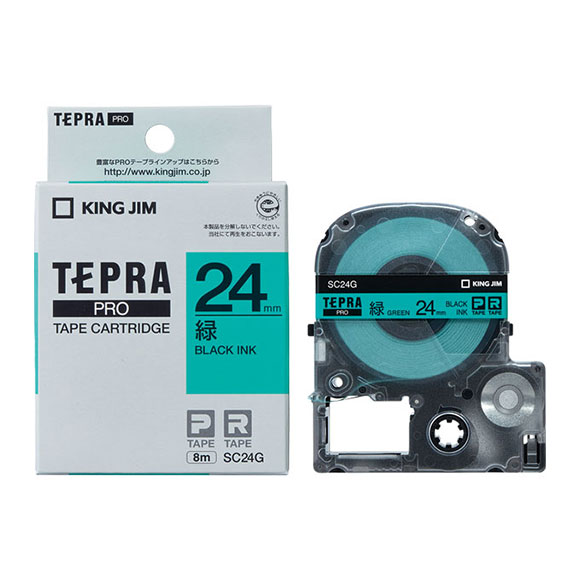 キングジム PRO テープカートリッジ カラーラベル(パステル)(24 幅/緑/黒文字) SC24G返品種別A