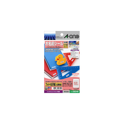 エーワン お名前シール フォト光沢紙(白無地)[はがきサイズ/52面/12シート] A-one はがきサイズのプリンタラベル 29340返品種別A