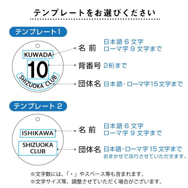 名前・背番号・所属団体名を彫刻できます。