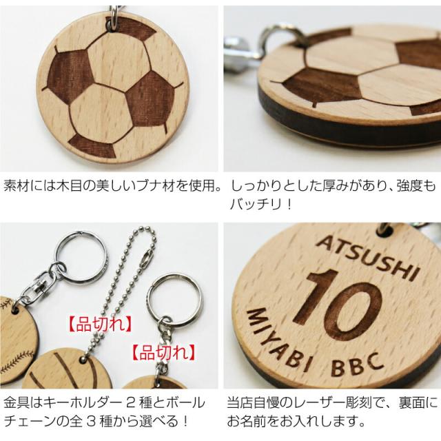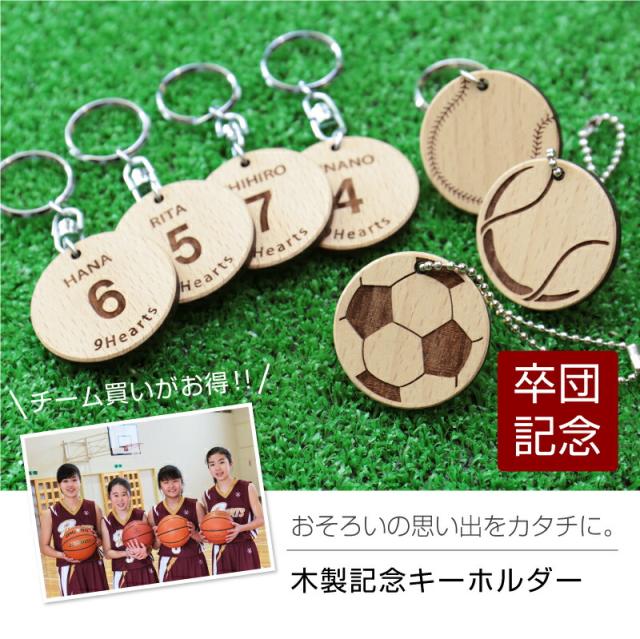 | 卒団・卒部の大切な節目に 木製記念キーホルダー ブナの木を使用し、それぞれのボールをリアルにデザインしたキーホルダー。裏面にはお名前・背番号・チーム名などを刻印することができます。 テニス、バレー、サッカー、野球、バスケットボールの全5種類。 また文字を刻印する裏面のテンプレートも3パターンから選択いただけるため、オリジナリティあふれるキーホルダーになります。 木目はきめ細かく美しい、強度の強いブナ材を使用しています。軽いのに厚さがあり丈夫だから、バッグにつけても安心。 大人でも子供でもしっくりくるナチュラルな材質で飽きのこないデザイン。コンパクトなサイズ感でつける場所を選ばず、ずっと持ち歩きたくなる、木の温かみを感じるキーホルダーです。 卒団記念品としてだけでなく、 お揃いで持てばきっと、チームの士気が高まり団結力・絆が深まること間違いなし。 指導し支えてくれたコーチや先生へ・・・ お子さんへ応援と激励の気持ちを込めてプレゼント。 大会、試合を控えた先輩・後輩に士気があがるお守りとして、などいろんなシーンで喜ばれるとっておきのキーホルダーです。 |