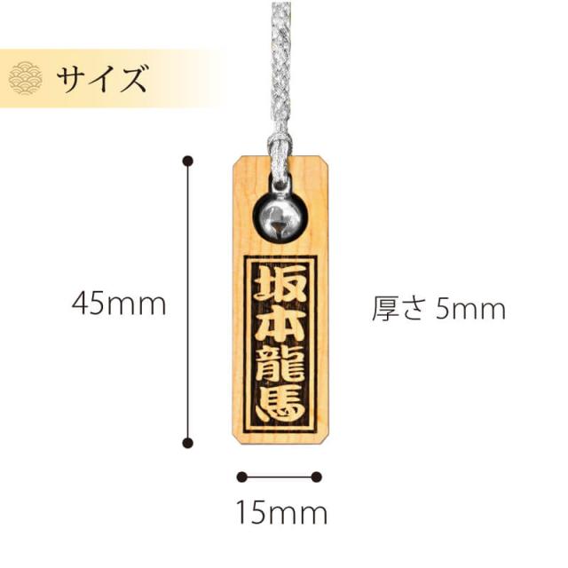 | サイズ | サイズ:木札:縦45mm、横15mm、厚さ5mm 根付紐:70mm |