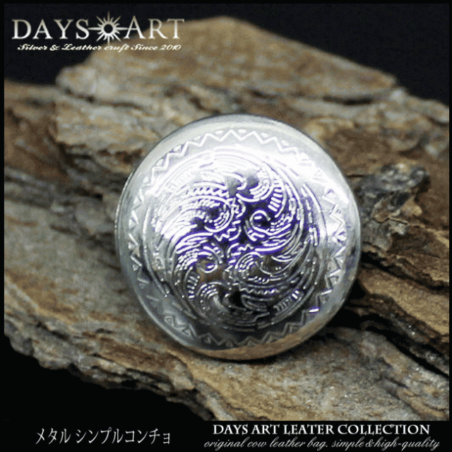 カービング模様を彫刻したシンプルなメタルコンチョです。