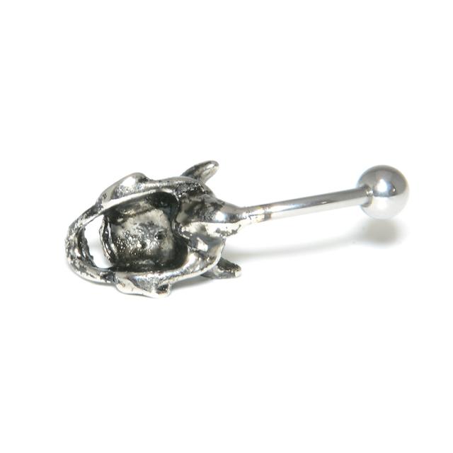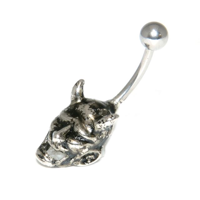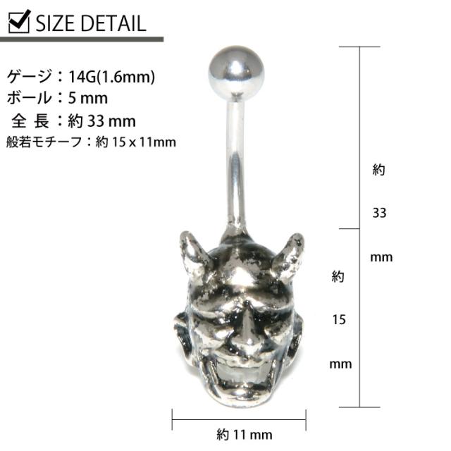 【メール便対応】ヘソピアス バナナバーベル調 般若フェース 14G(1.6ミリ) ボディピアス サージカルステンレス ボディーピアス ネイブル へそピアス 和風 和テイスト 鬼 面 顔 デザイン ┃