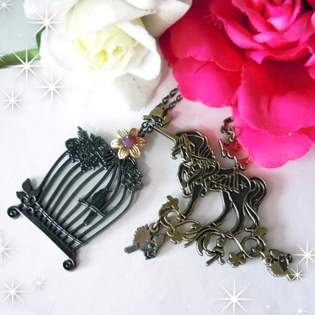 ネックレスワンダードリームロマンチックガーリーおとぎ話のユニコーン鳥かご透かし彫り乙女のチャーム