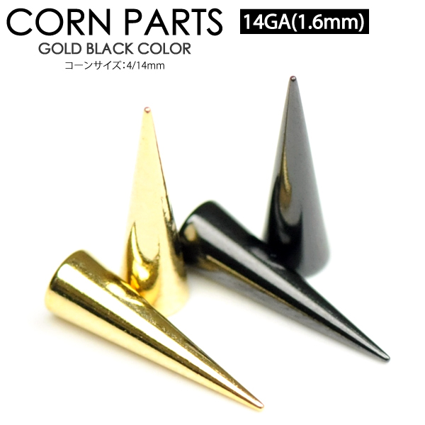 【メール便対応】ステンレス スパイク コーンパーツ カラー 14G(1.6mm) 4/14mm [ゴールド ブラック] カラーコーティング加工 サージカルステンレス カスタマイズ オリジナル 付け替え スペア ネジ式 部品 アクセサリー ┃