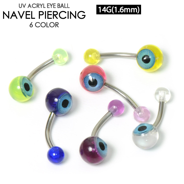 【メール便対応】ヘソピアス 目ん玉 EYE アイ 14G(1.6mm)バナナバーベル UVアクリルボディーピアス ヘソピ バナナバーベル ネイブル キラキラ 14G(1.6mm) h602 ┃