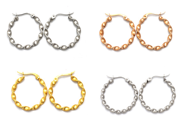 フープピアス ツイストフープ ステンレス製 ピアス アレルギー対応 アクセサリー メンズ レディース シンプル アクセ 両耳用 カジュアル 普段使い アレルギーフリー 上品 金属アレルギー 男女兼用 プチプレ プチギフト