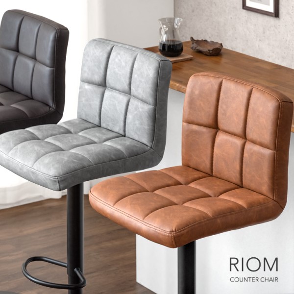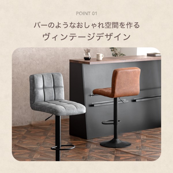 カウンターチェア ヴィンテージ調 背もたれ付き 昇降 回転 バーチェア ハイチェア チェア カウンタースツール ハイスツール 椅子 イス 回転式 昇降式 高さ調整 背もたれ クッション ビンテージ レトロ モダン カフェ ブラック ブラウン グレー 北欧 おしゃれ