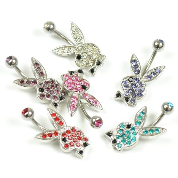【メール便対応】ヘソピアス バニー(ラビット) ラインストーン 14G(1.6mm) ボディピアス カラージュエル ヘソピ バナナバーベル ネイブル キラキラ 14ゲージ(1.6ミリ)h544 ┃