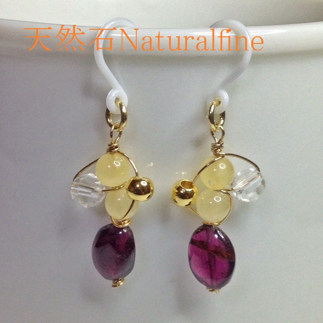 ピアス ガーネット 天然石 イヤリング 樹脂金具 アラゴナイト 水晶 チタン アレルギー対応 1月誕生石