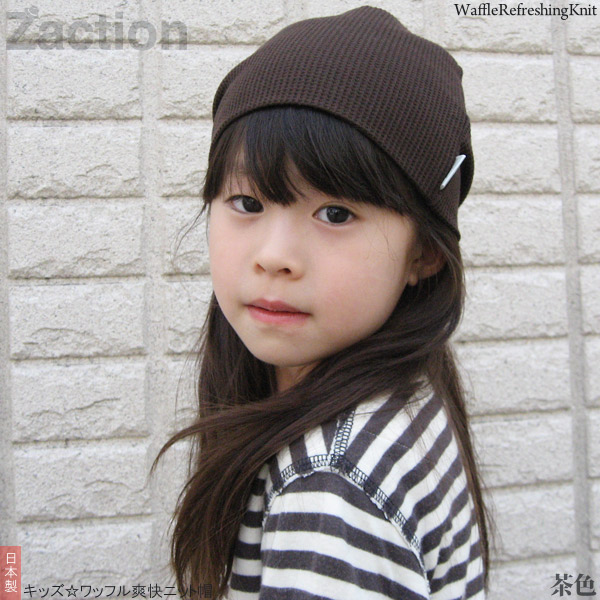 ニット帽 キッズ [メール便可] 帽子 子供用 春夏 薄手 サマー 親子ペア / キッズ ワッフル爽快 ニット帽 日本製