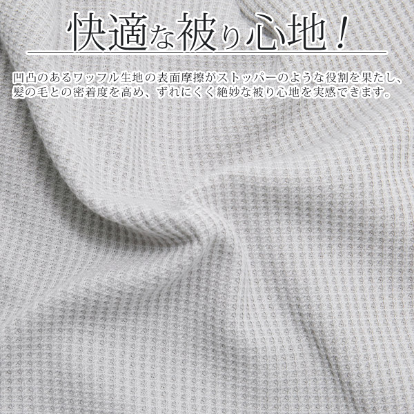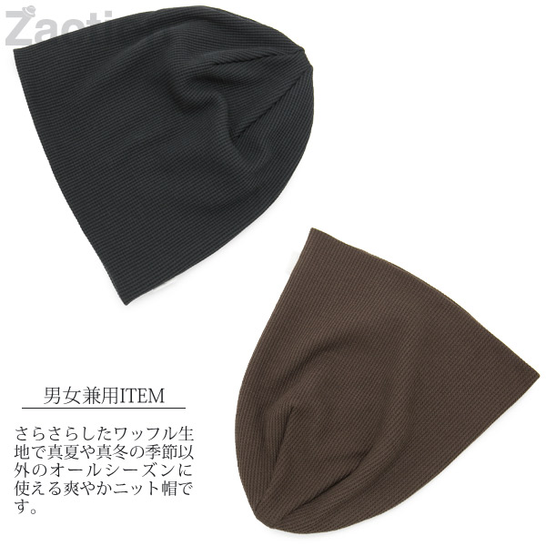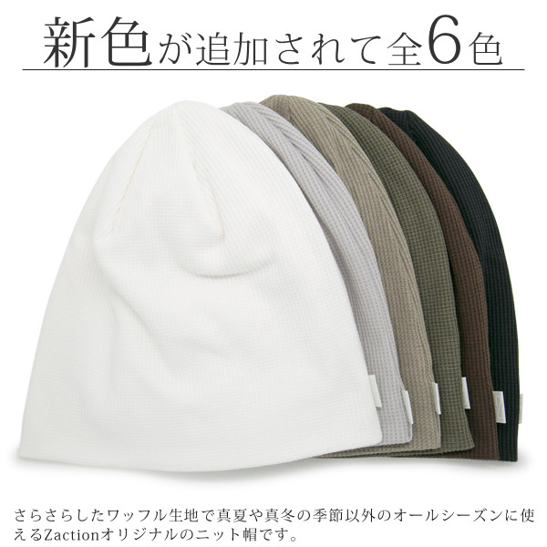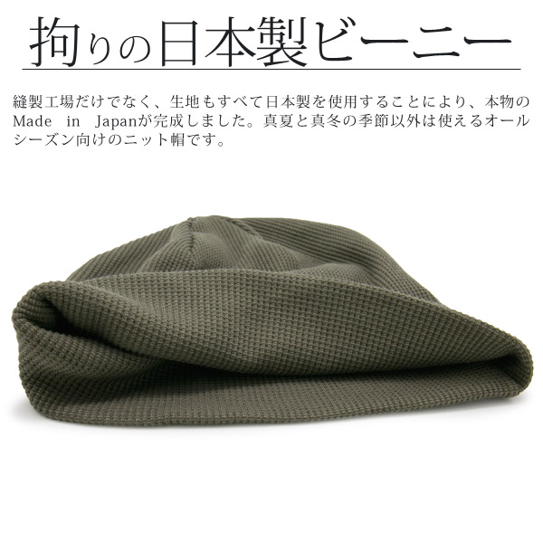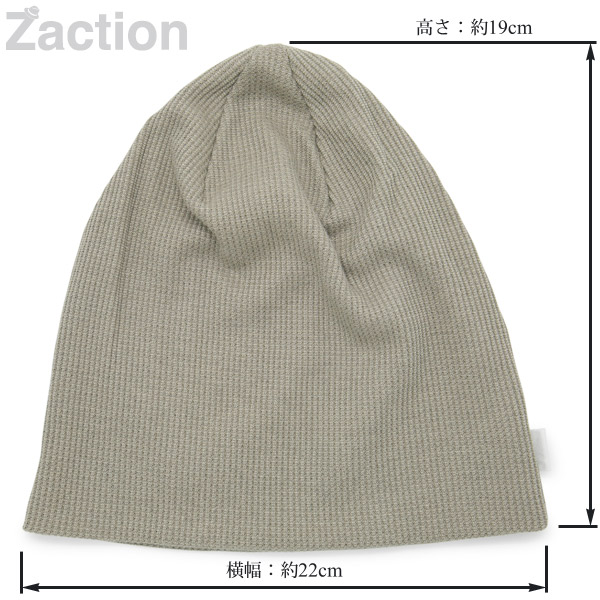 さらさらしたワッフル生地で真夏や真冬の季節以外のオールシーズンに使えるZactionオリジナルのニット帽です。縫製工場だけでなく、生地も日本製を使用することにより、本物のMade in Japanの商品が完成しました。凹凸のあるワッフル生地の表面摩擦がストッパーのような役割を果たし、髪の毛との密着度を高め、ずれにくく絶妙な被り心地を実感できます。シンプルなデザインのビーニーで、オールシーズン被れますが、どちらかというと春・秋に着用するのがお勧めです。