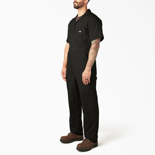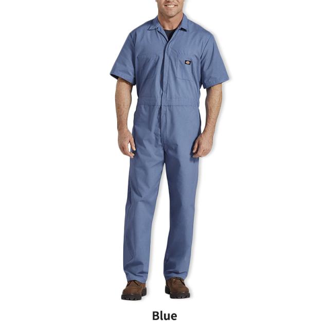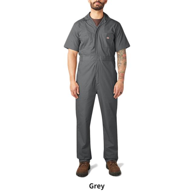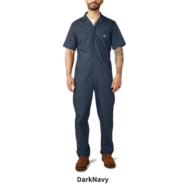 SHORT SLEEVE COVERALLS 夏場の作業やカジュアルコーデに最適な、Dickies(ディッキーズ)の半袖つなぎ「SHORT SLEEVE COVERALLS」。薄くて軽やかなポリエステル×コットン素材を使用し、通気性に優れたクールビズ仕様のワークウェア。