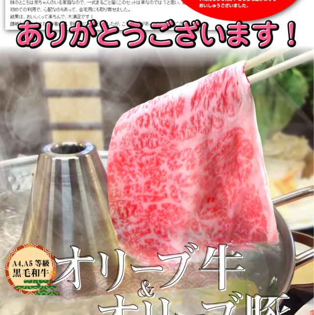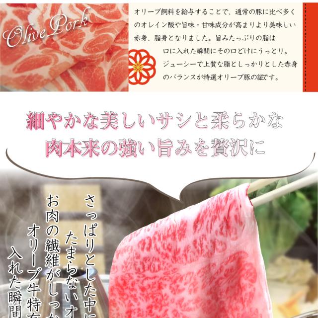 【送料無料//お歳暮 御歳暮/ギフト/贈り物/贈答/祝い/記念/しゃぶしゃぶ/豚肉/牛肉/国産/ミックス/ブランド/オリーブ牛/オリーブ豚/2種】