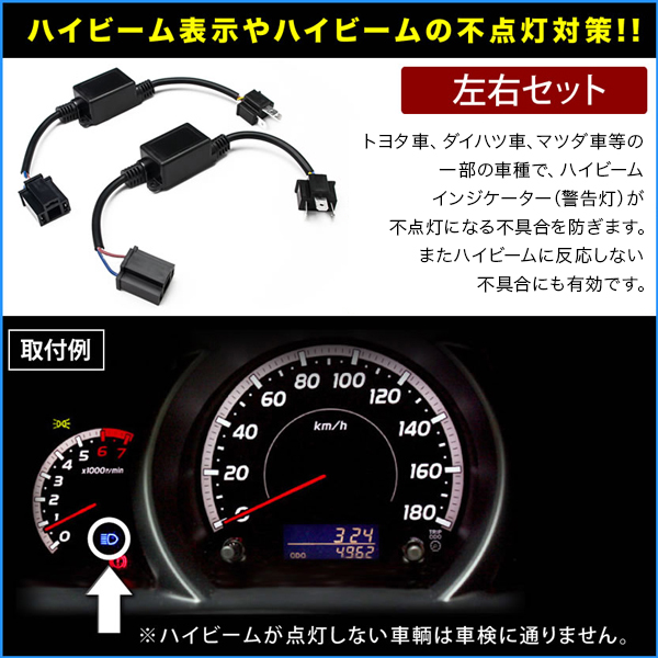 H4(H/L)ハイビームインジケーター表示 ハイビーム不点灯対策 キャンセラー HID LEDヘッドライト用 左右セット 社外HID用