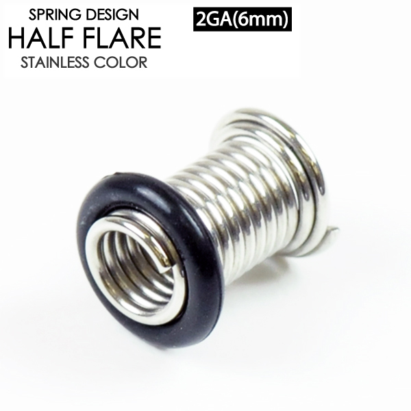 【メール便対応】ボディピアス シングルフレア スプリング 2G(6mm) サージカルステンレス316L製(医療用) デザイン ハーフフレア アイレット 耳 イヤーロブ 2ゲージ(6ミリ) ┃