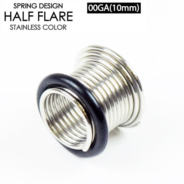 【メール便対応】ボディピアス シングルフレア スプリング 00G(10mm) サージカルステンレス316L製(医療用) デザイン ハーフフレア アイレット 耳 イヤーロブ 00ゲージ(10ミリ)┃