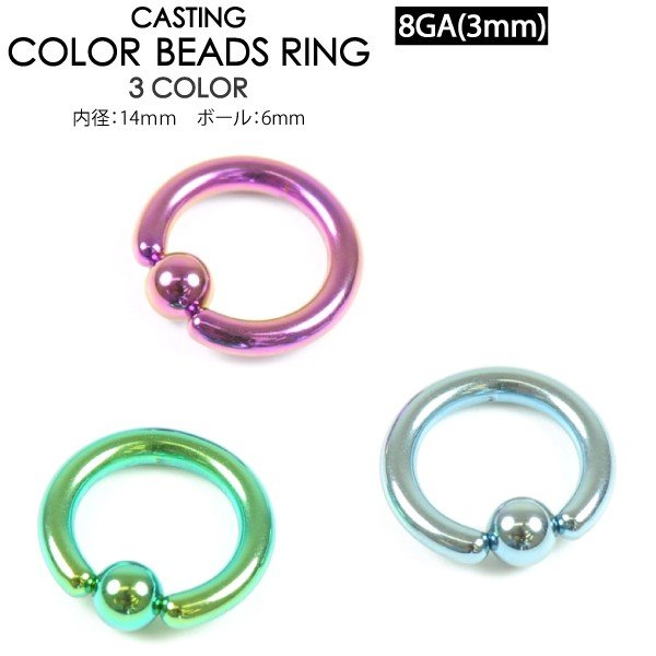 メール便 送料無料 キャプティブビーズリング カラー 8ゲージ(3ミリ) キャスティング ボール ボディーピアス 金 黒 水色 青 緑 8GA(3mm) CBR BCR ┃