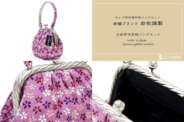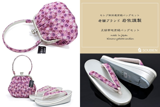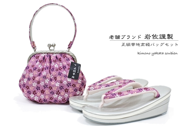 草履バッグセット 振袖用 成人式用 岩佐謹製 京都西陣織 ピンク 紫 白 桜 卒業式 袴 結婚式 着物 和装 フリーサイズ 日本製