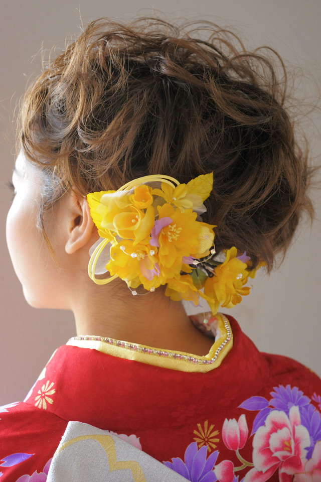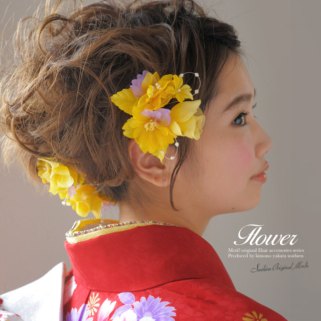 成人式 髪飾り 成人式の髪飾り ロングタイプ 2点セット 黄色 イエロー 花 振袖 卒業式 袴 結婚式 着物 ドレス 婚礼 和服 髪留め ヘアアクセサリー コーム・Uピン 和装
