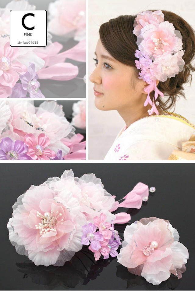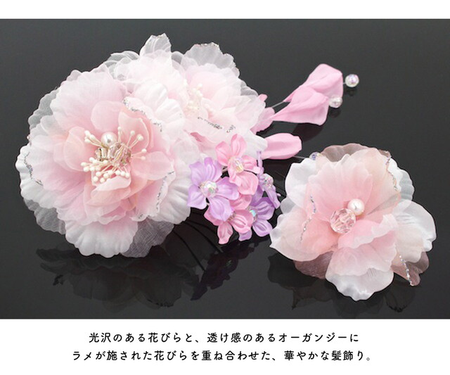 髪飾り 成人式 2点セット 振袖 卒業式 袴 花 ラインストーン パール ラメ オーガンジー 結婚式 パーティー ドレス 婚礼 髪留め 和装