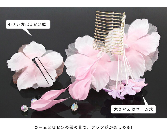 大きい髪飾りと小さい髪飾りの2点セット。