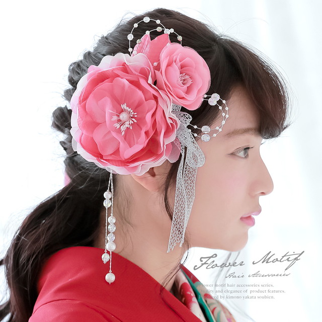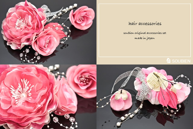 ゴージャスな牡丹の花をデザインした髪飾り2点セット。