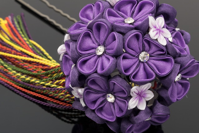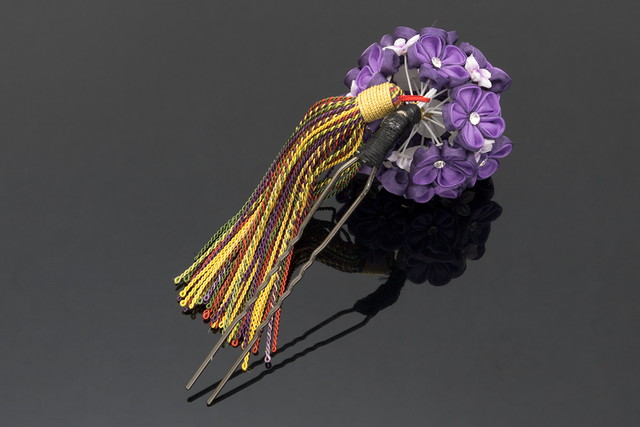 成人式 髪飾り 成人式の髪飾り つまみ細工 簪 卒業式 日本製 正絹 紫 組紐 ラインストーン かんざし カンザシ ヘアアクセサリー 髪飾り 髪留め 和装