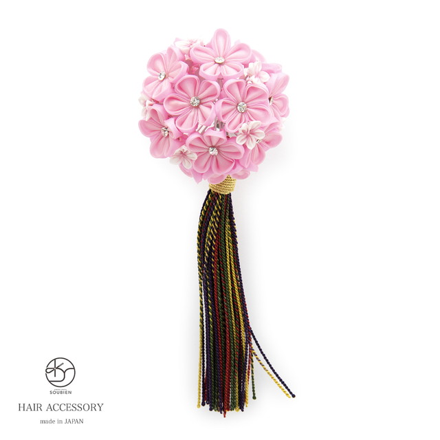 成人式 髪飾り 成人式の髪飾り つまみ細工 簪 卒業式 日本製 正絹 ピンク 組紐 ラインストーン かんざし カンザシ ヘアアクセサリー 髪飾り 髪留め 和装