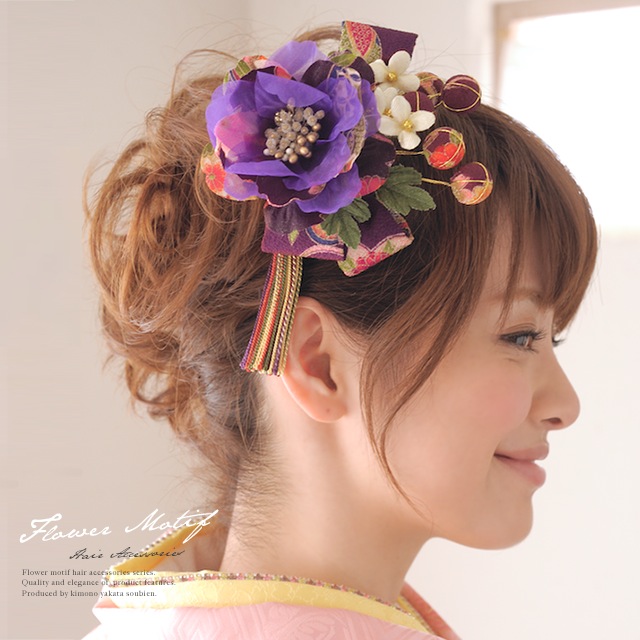 成人式 髪飾り 成人式の髪飾り 紫系 袴 卒業式 振袖 着物 和柄 組紐 花 フラワー 和装