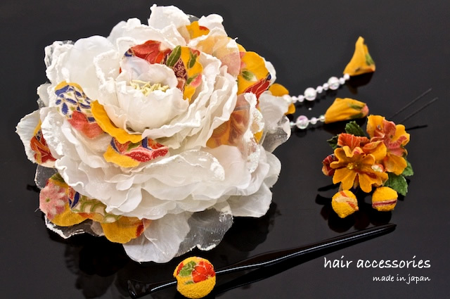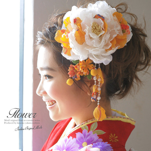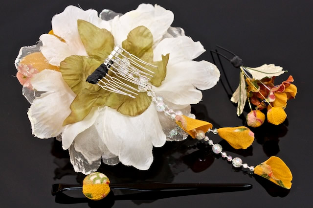 成人式 髪飾り 成人式の髪飾り 日本製 オフしろ 黄色 お花 和柄 かんざし 簪 袴 振袖向け 着物 和装