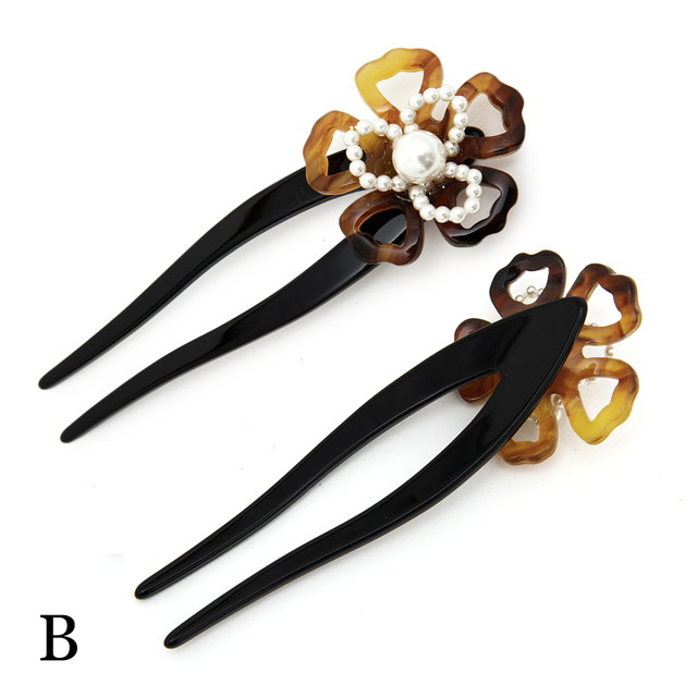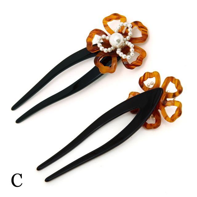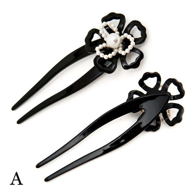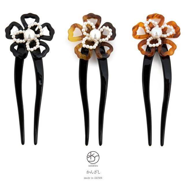かんざし 簪 着物 浴衣 髪飾り お花 パール 全3色(黒・芥子色・茶色)