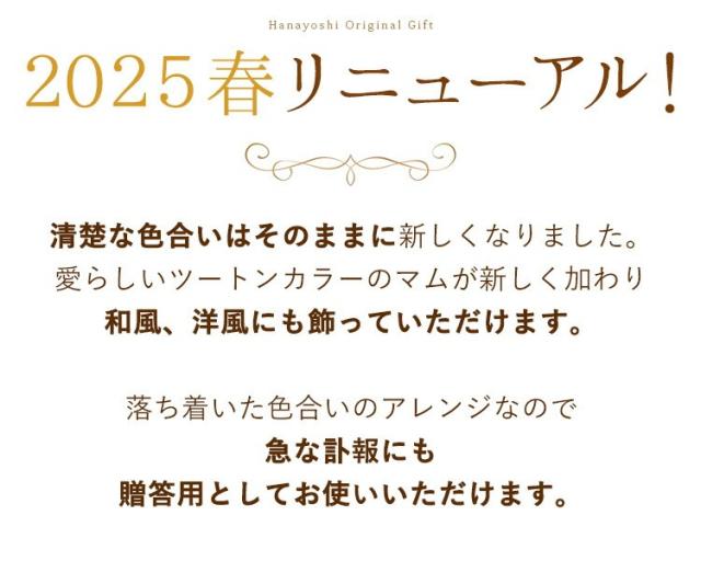 お盆や法事、仏壇用の贈り物としても品のあるアレンジメントです。