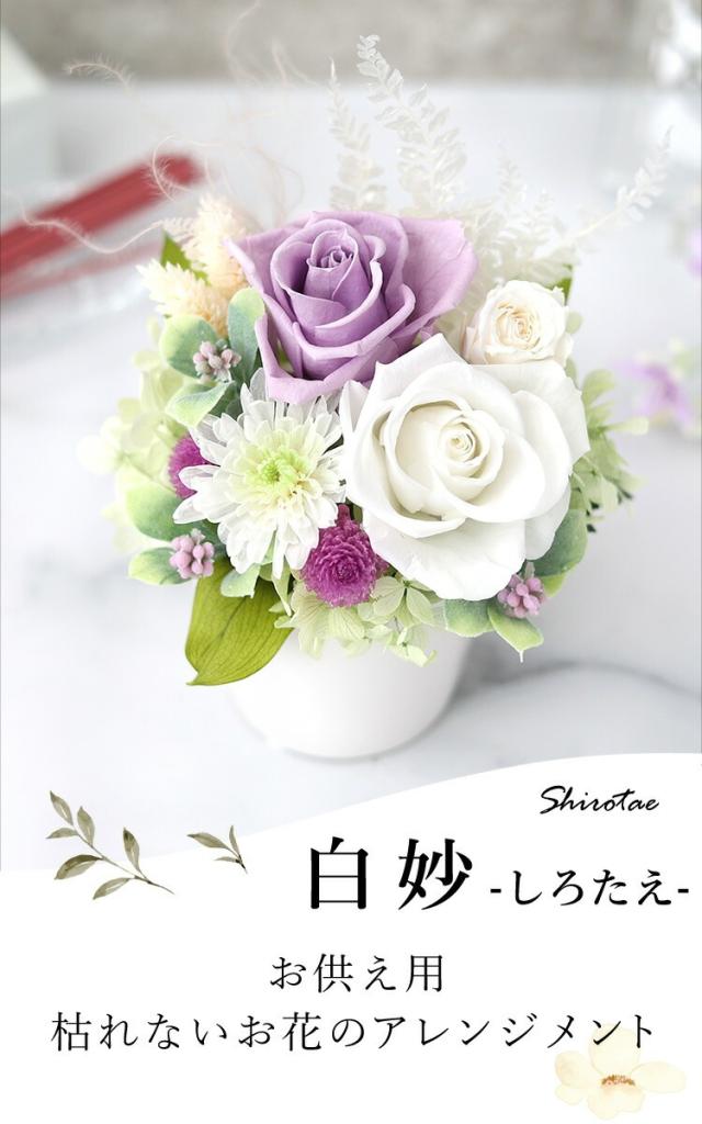 枯れない花で手間がかからず、命日や一周忌、三回忌などのお供えに最適です。