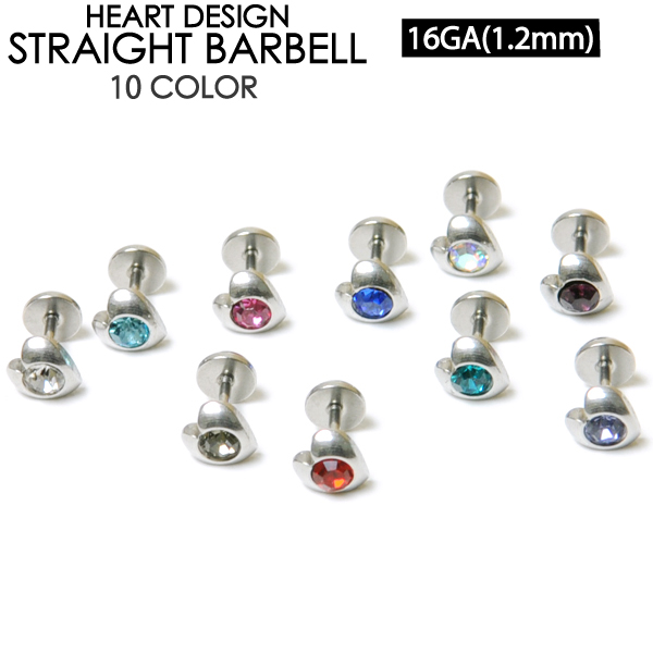 【メール便対応】バーベル ハート ジュエル 16ゲージ(1.2ミリ)ハーフボール サージカルステンレス ボディーピアス 16G デザイン モチーフ 可愛い 軟骨ピアス イヤーロブ トラガス ┃
