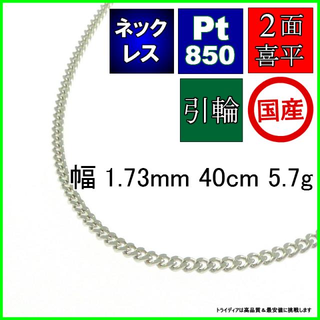 プラチナ 喜平 ネックレス 5.7g 40cm 2面 幅1.7mm Pt850 喜平ネックレス 日本製 チェーン メンズ レディース アクセサリー 引輪 国産 白金 pt キヘイ kihei 二面 プレゼント グラム 誕生日 贈り物 ギフト