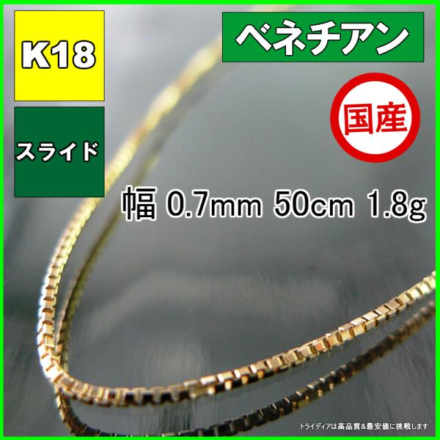 ベネチアン ネックレス 18金 18k ネックレスチェーン k18 メンズ レディース プレゼント 幅0.7mm 50cm 1.8g スライド