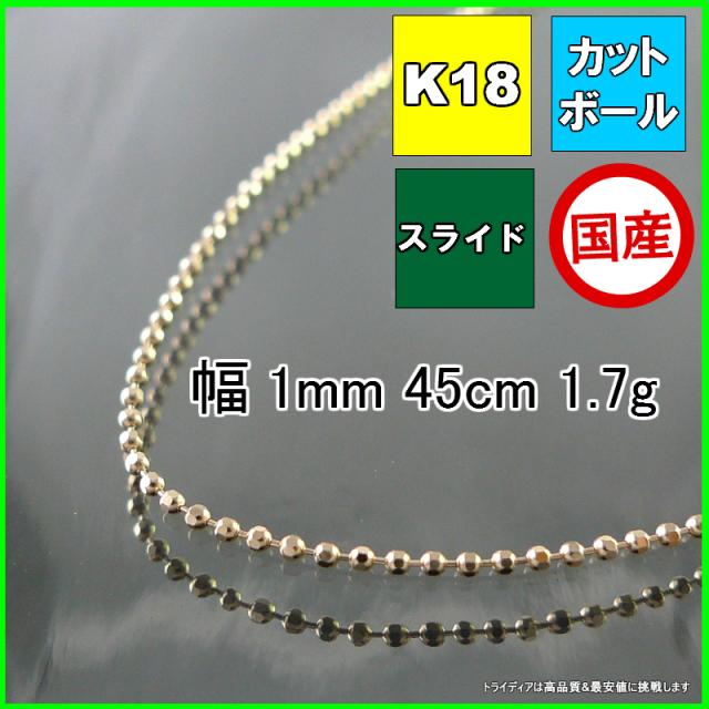 カットボール ネックレス 18金 18k ネックレスチェーン k18 メンズ レディース プレゼント 幅1mm 45cm 1.7g スライド