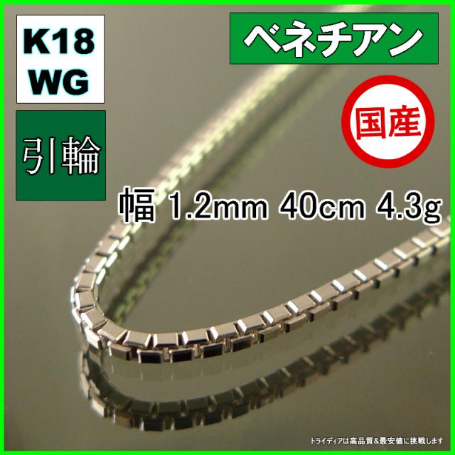 ベネチアン ネックレス 18金 18k ホワイトゴールド WG ネックレスチェーン k18 メンズ レディース プレゼント 幅1.2mm 40cm 4.3g 引輪