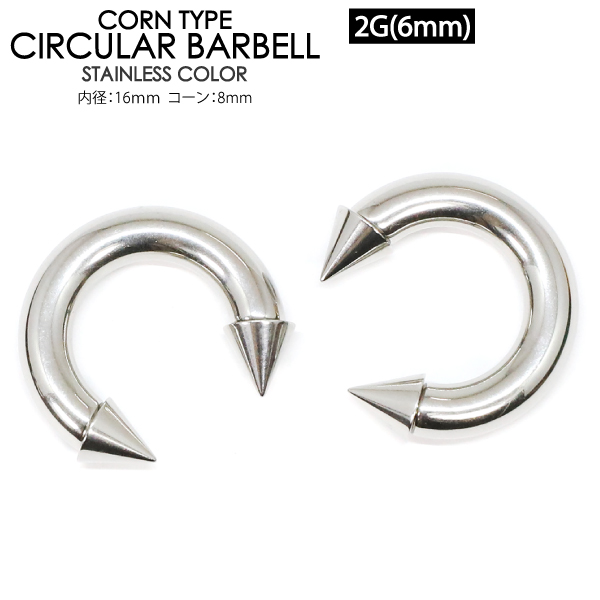 メール便送料無料 サーキュラーバーベル コーンスパイク 2G(6mm) サージカルステンレス316L 定番 ボディピアス ボディーピアス 2ゲージ【軟骨ピアス トラガス イヤーロブ ヘリックス リップ タンリム ロブ】 ┃