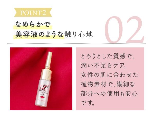 指にとり、ゆっくりなじませてマッサージ…。自然な潤いを感じられるような魅力を持っています。