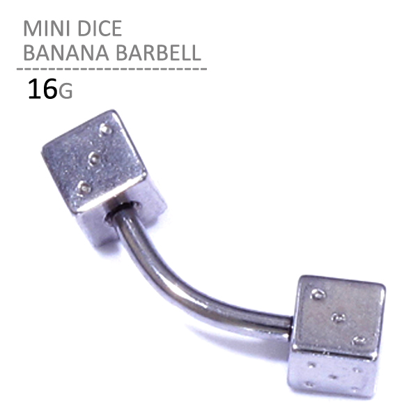 ミニダイスバナナ 16G ボディピアス ボディーピアス カーブドバーベル カーブバーベル トラガス ヘリックス 耳ピアス 軟骨ピアス へそピアス 眉ピアス アイブロウ ピアッシング ヘソピアス ステンレス