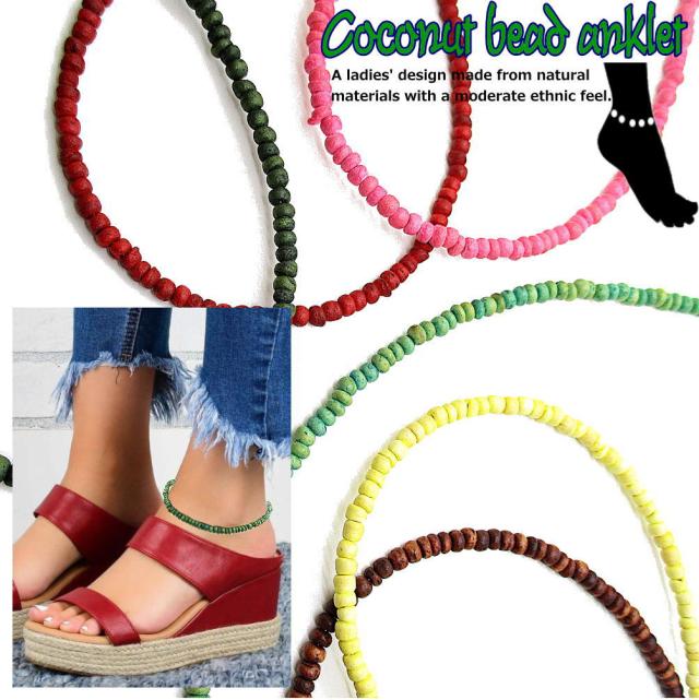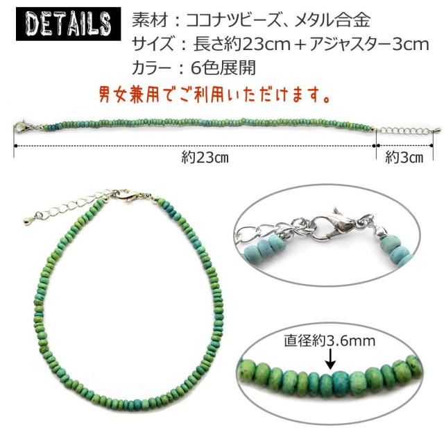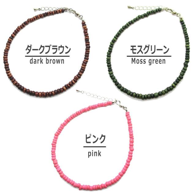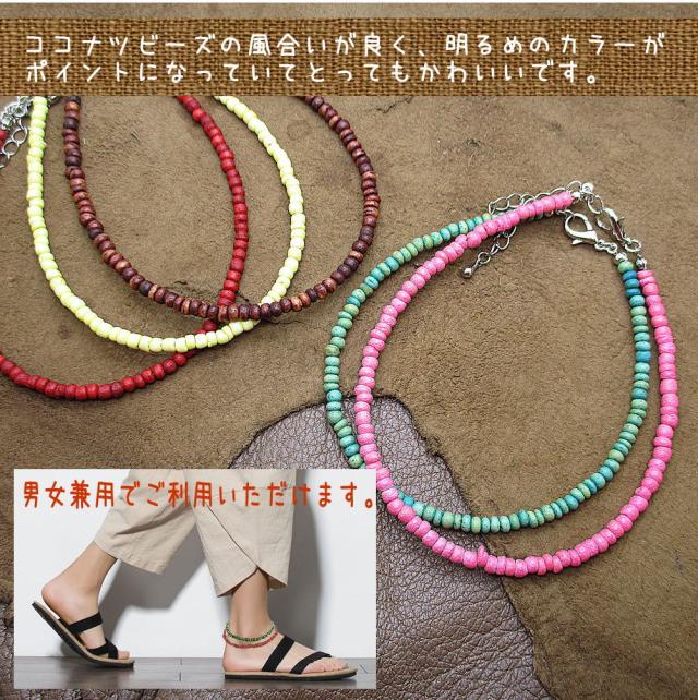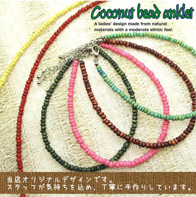 ココナツビーズ アンクレット オリジナルデザイン ハンドメイド メール便 夏アクセ 足首 フリーサイズ 天然素材 可愛い 青 赤 ピンク 黄色 グリーン ブラウン 茶色 3-8047