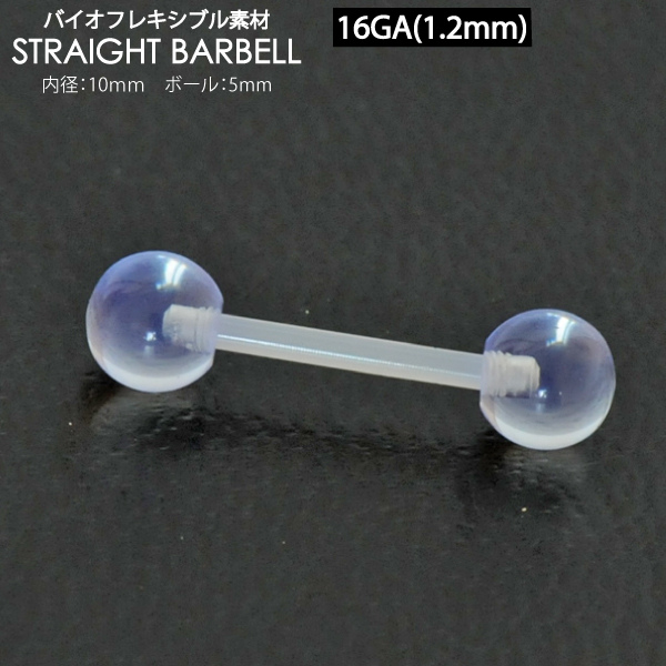 【メール便対応】バイオフレキシブル ボディピアス バーベル16G(1.2mm) UVアクリル ボール16ゲージ(1.2ミリ) 柔軟なアクリル素材 シークレットピアス 透明 目立たない 軟骨ピアス イヤーロブ┃