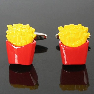 フライドポテトをモチーフにしたユニークなカフスボタン。
